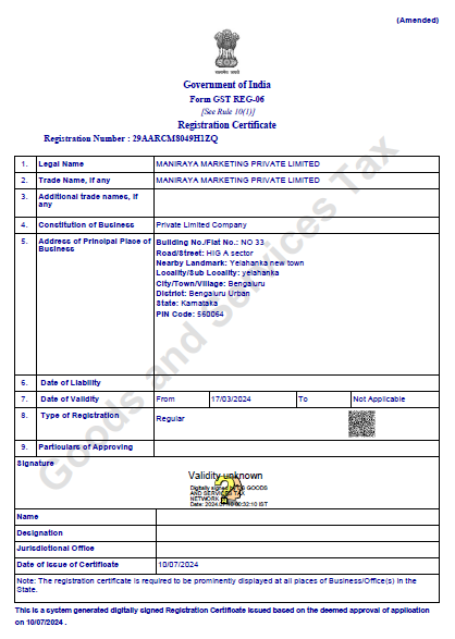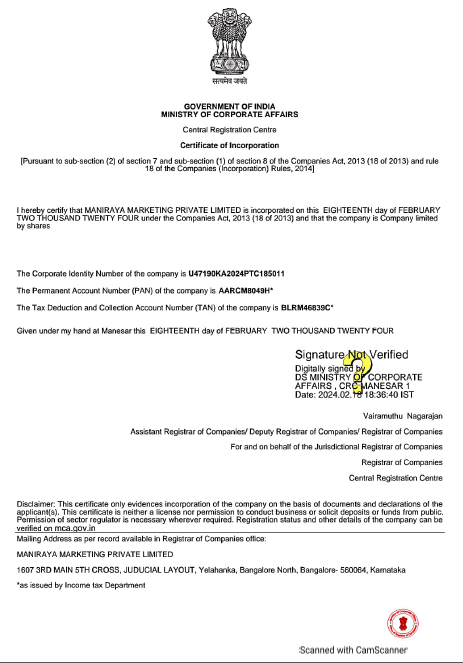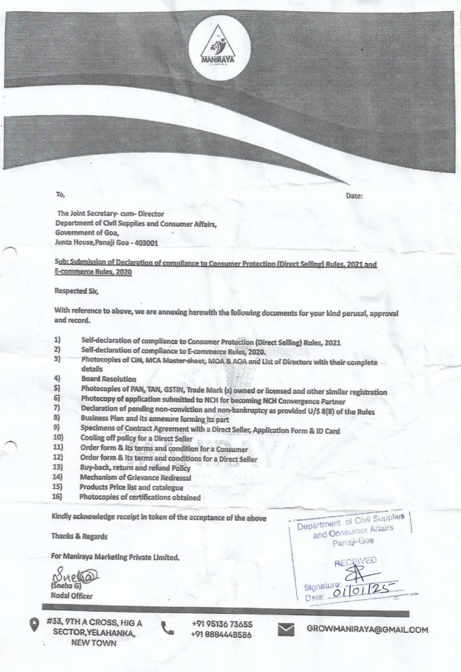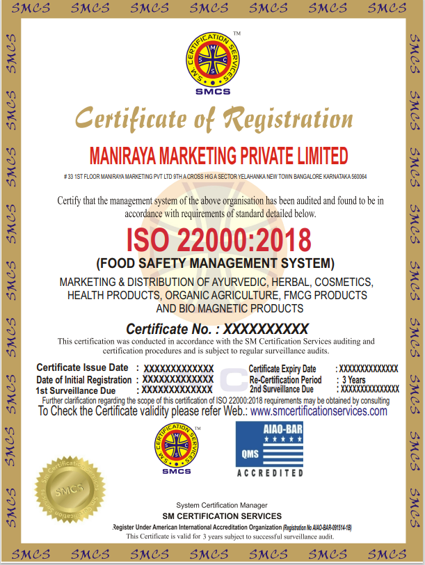 MANIRYA_MARKETING_22000_ISO CERTIFICATE